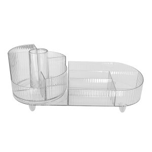 This transparent rotating multifunctional storage box makes your desktop both neat and beautiful.