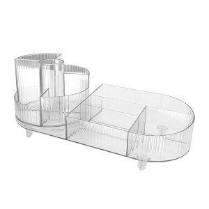 The makeup box is made of high-quality materials and designed to be fashionable and practical, as shown in the picture. It has multiple compartments for easy and orderly storage. The transparent design allows you to see the desired items at a glance.