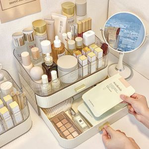 Our cosmetics storage box is made of safe and non-toxic plastic material, which not only securely stores our cosmetics but is also very environmentally friendly. Careful layered design can accommodate various cosmetics.